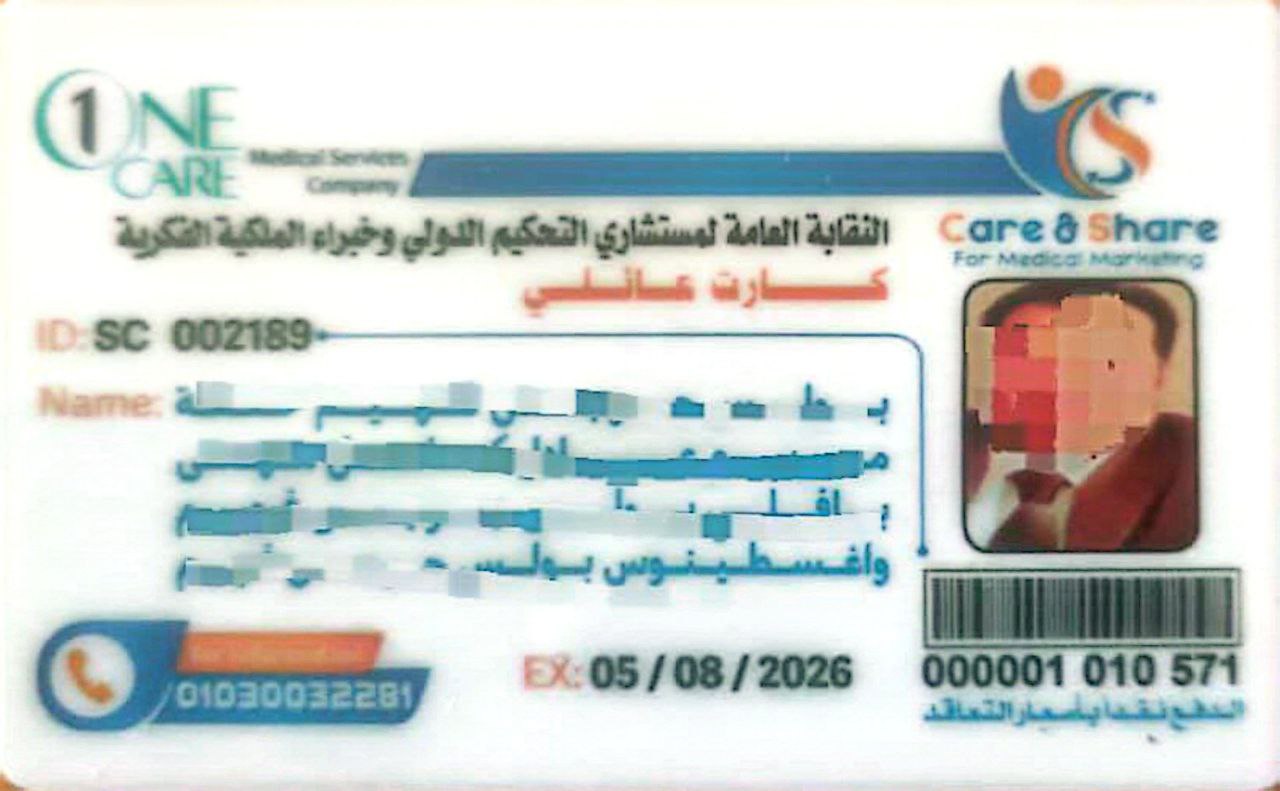 يمكن إضافة 3 أفراد من الأسرة ليصبح الكارت الطبي عائلي.